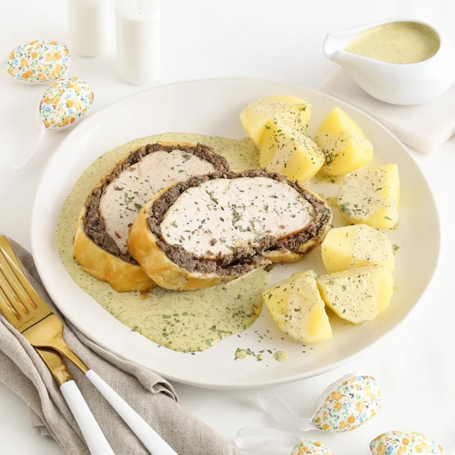 Putenfilet Wellington mit Kartoffeln und Sauce Bernaise
