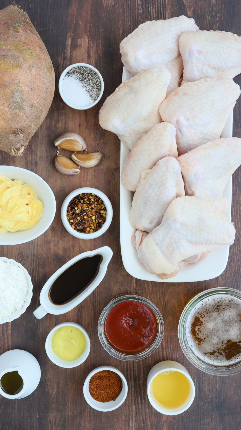 Chili-Bier-Chicken Wings mit Süßkartoffelpommes