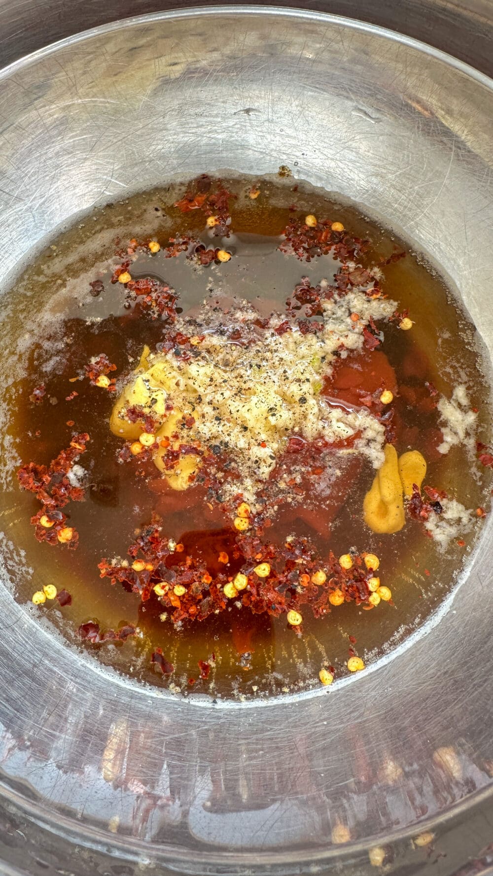 Zuerst Bier, Ketchup, Öl, Senf, Honig, Worcestershiresauce, Chili, gehackten Knoblauch und etwas Salz und Pfeffer mischen. |