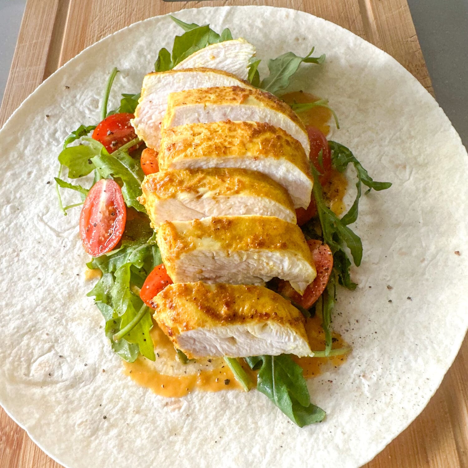 Curry-Hähnchen-Wrap mit Rucola und Tomaten