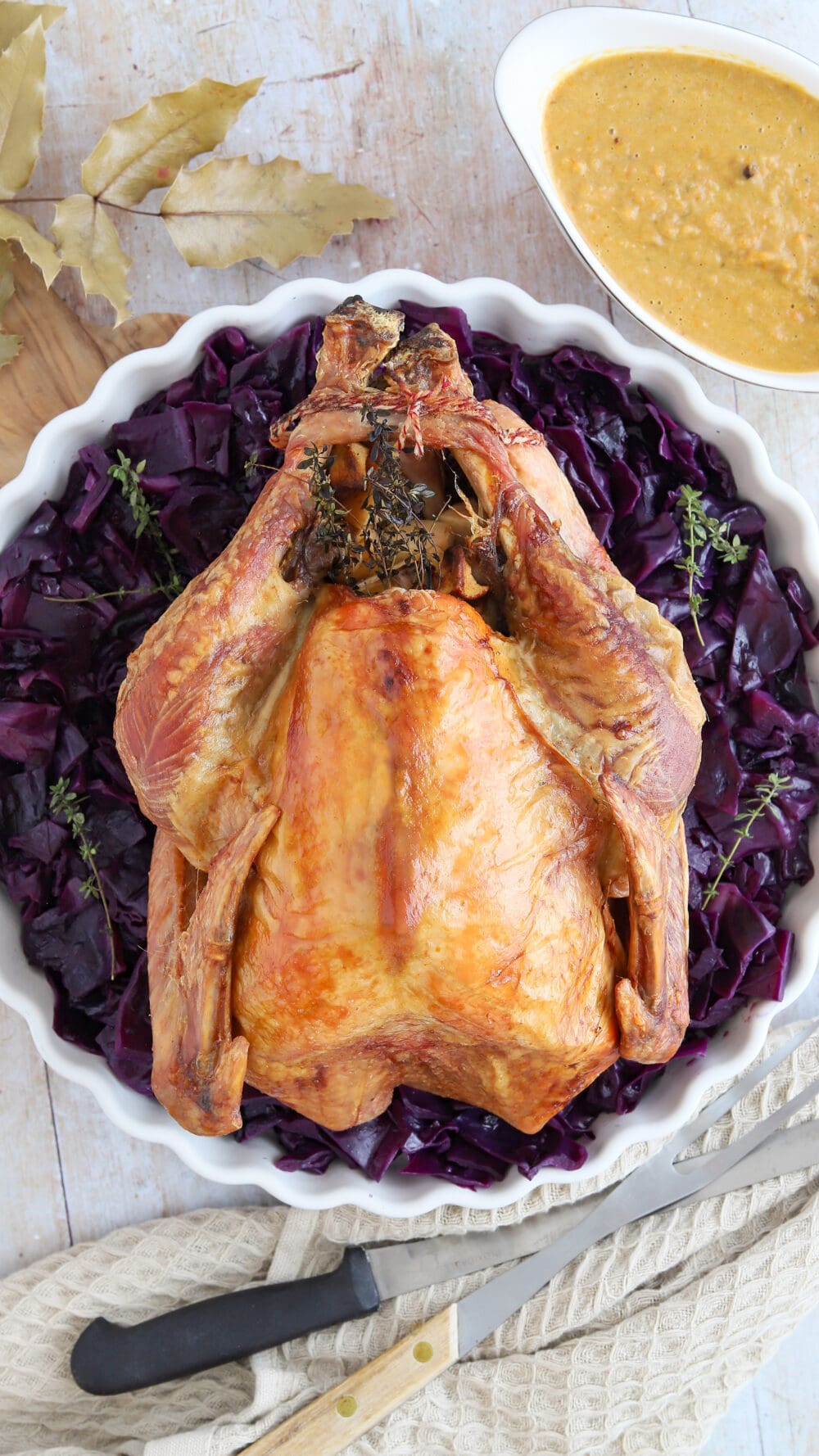 Ganze Pute mit Apfel-Thymian-Füllung