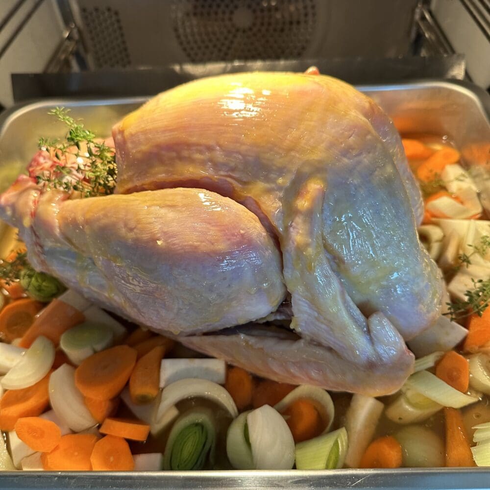 | 6. | Die Pute für 3,5 bis 4 Stunden bei 160 Grad im Ofen garen. |