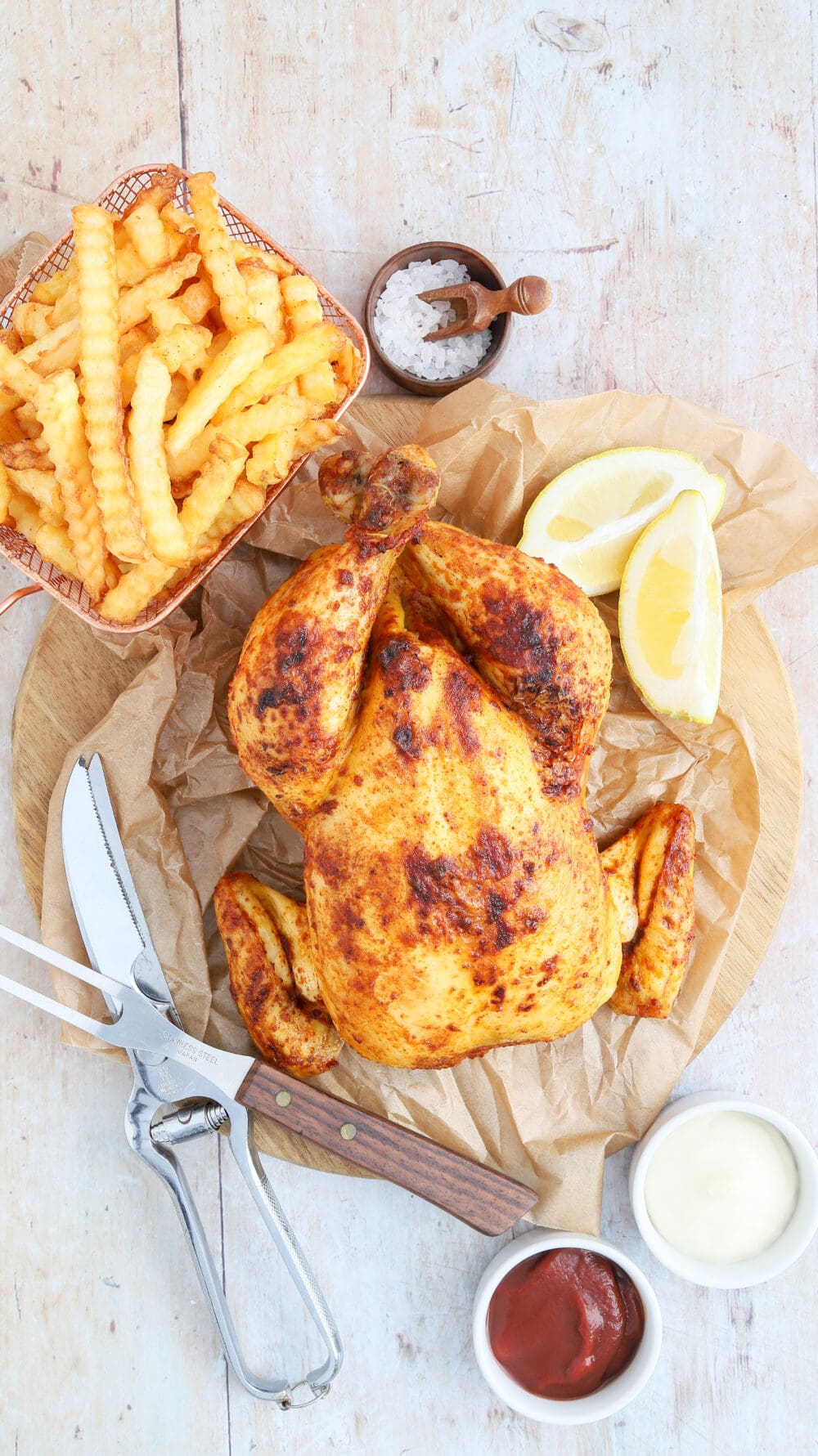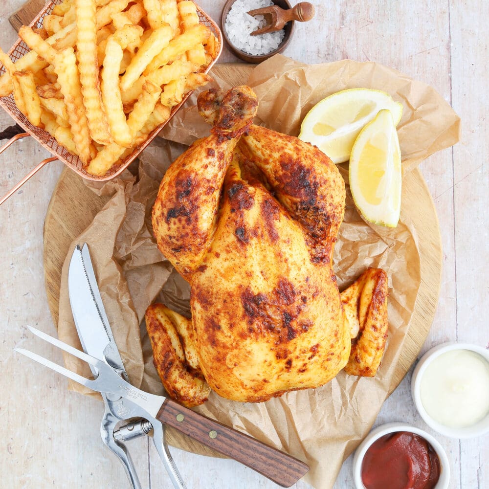 Ganzes Hähnchen mit Pommes