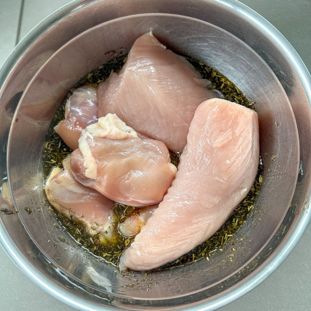 | 2. | Dann die Hähnchenunterkeulen darin marinieren… |