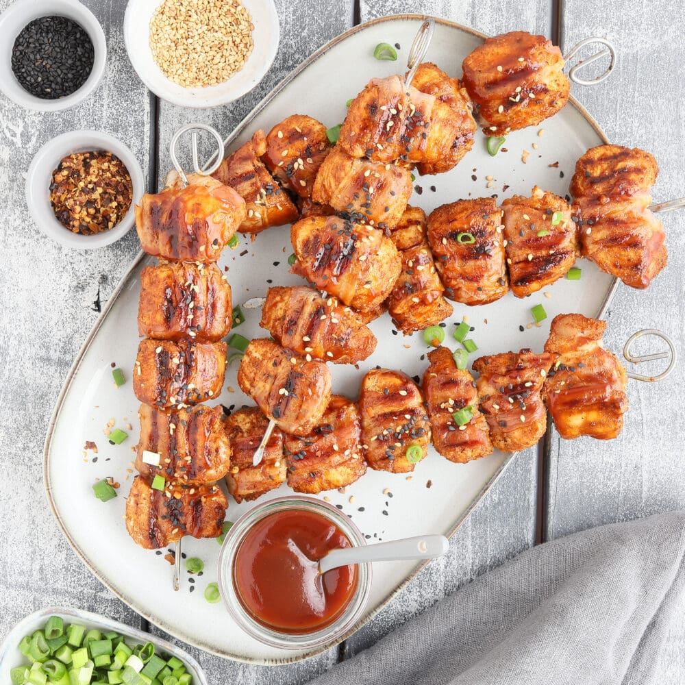 Glasierte Hähnchen-Bacon-Spieße vom Grill