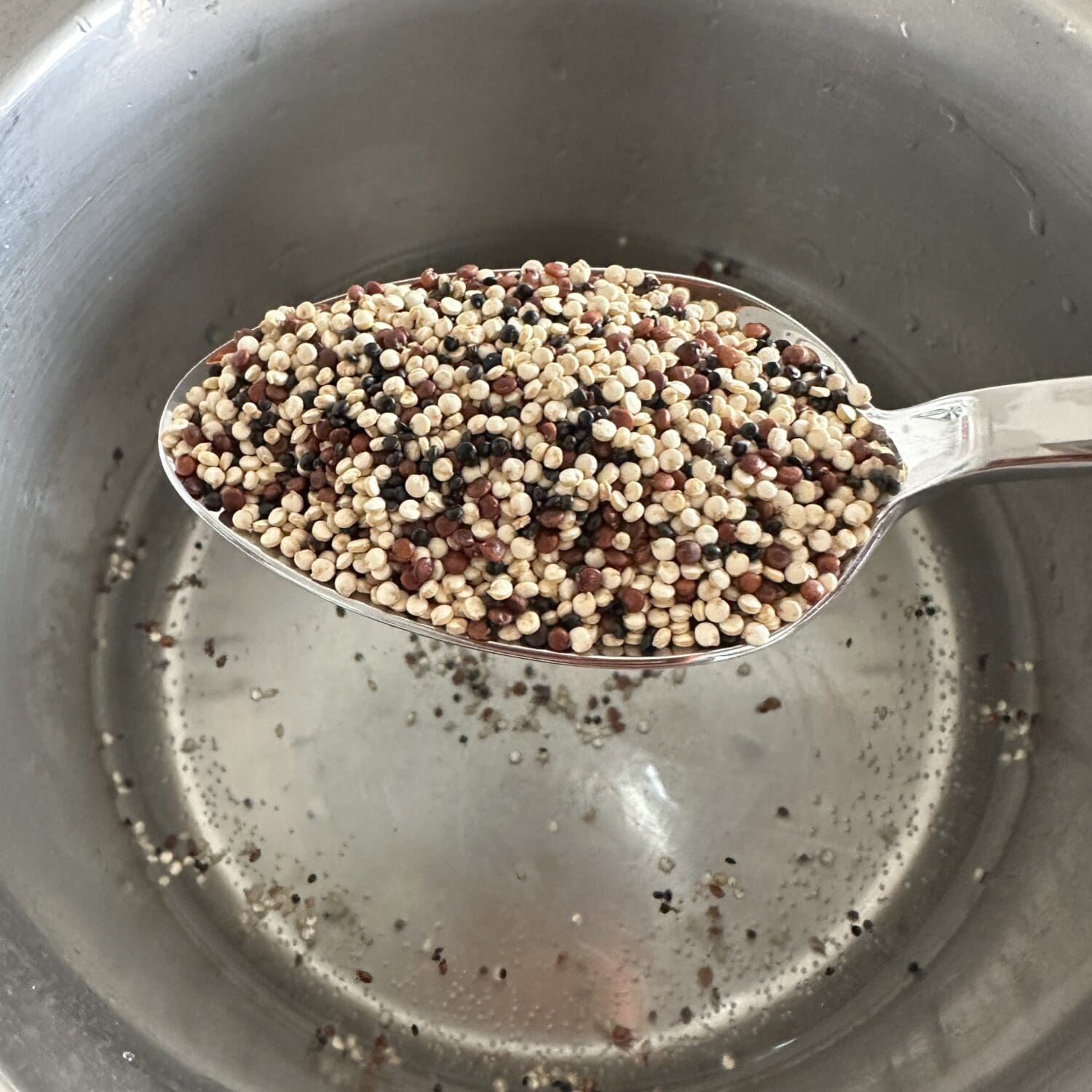 | 4. | Jetzt den Quinoa garen. Avocados schälen, entkernen und in Scheiben schneiden. Tomaten halbieren. Mais abgießen. |