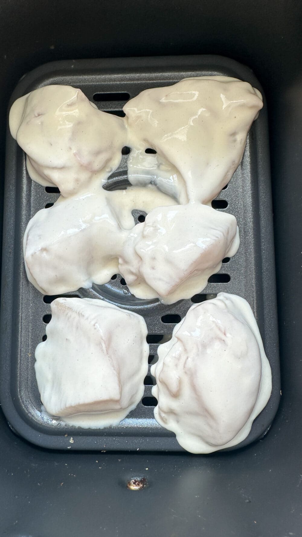 | 3. | …und in der Heißluftfritteuse circa 20 bis 25 Minuten bei 200 Grad ausbacken. Dabei gelegentlich mit Öl besprühen. |