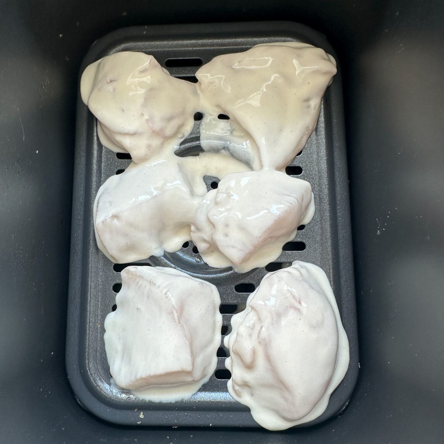 …und in der Heißluftfritteuse circa 20 bis 25 Minuten bei 200 Grad ausbacken. Dabei gelegentlich mit Öl besprühen. |