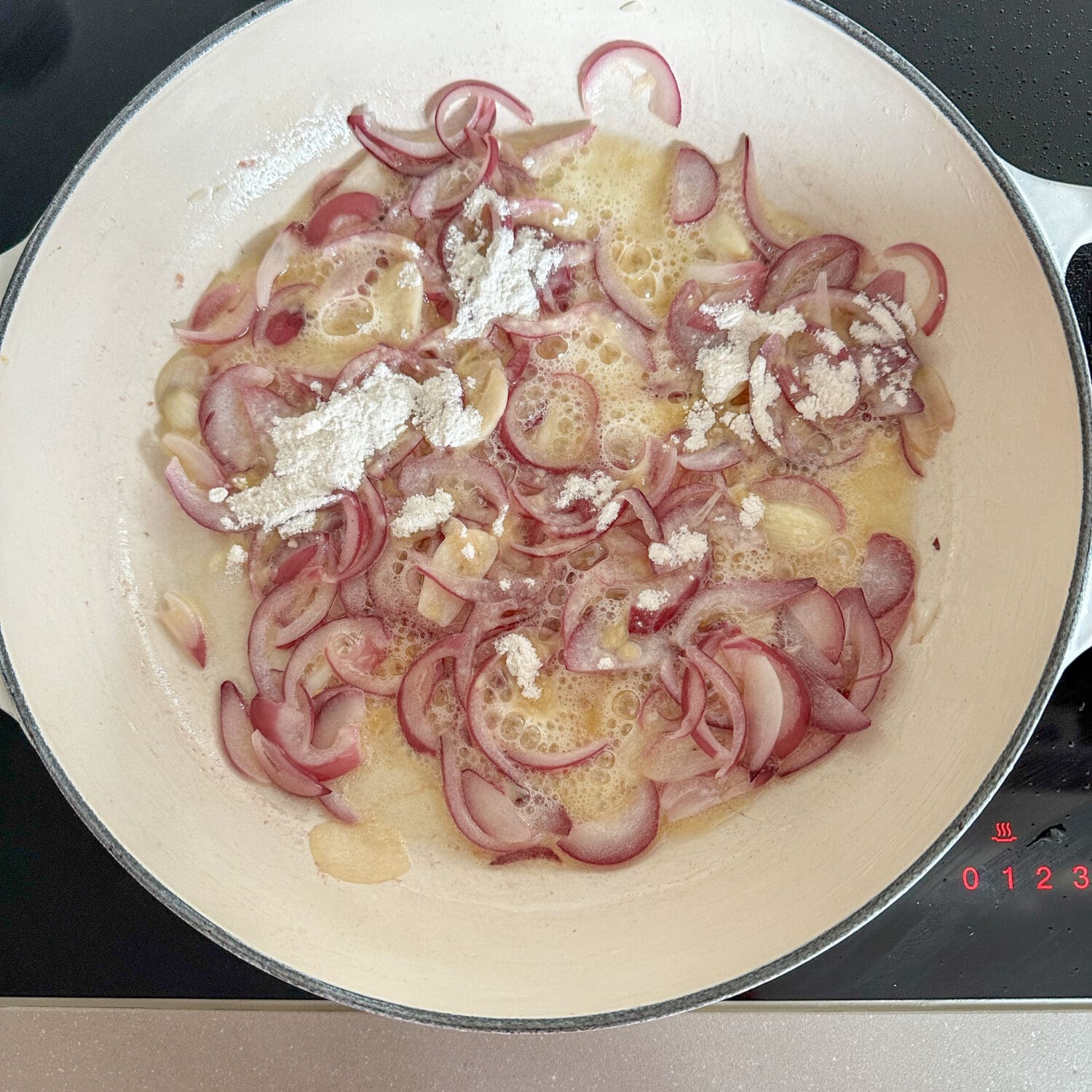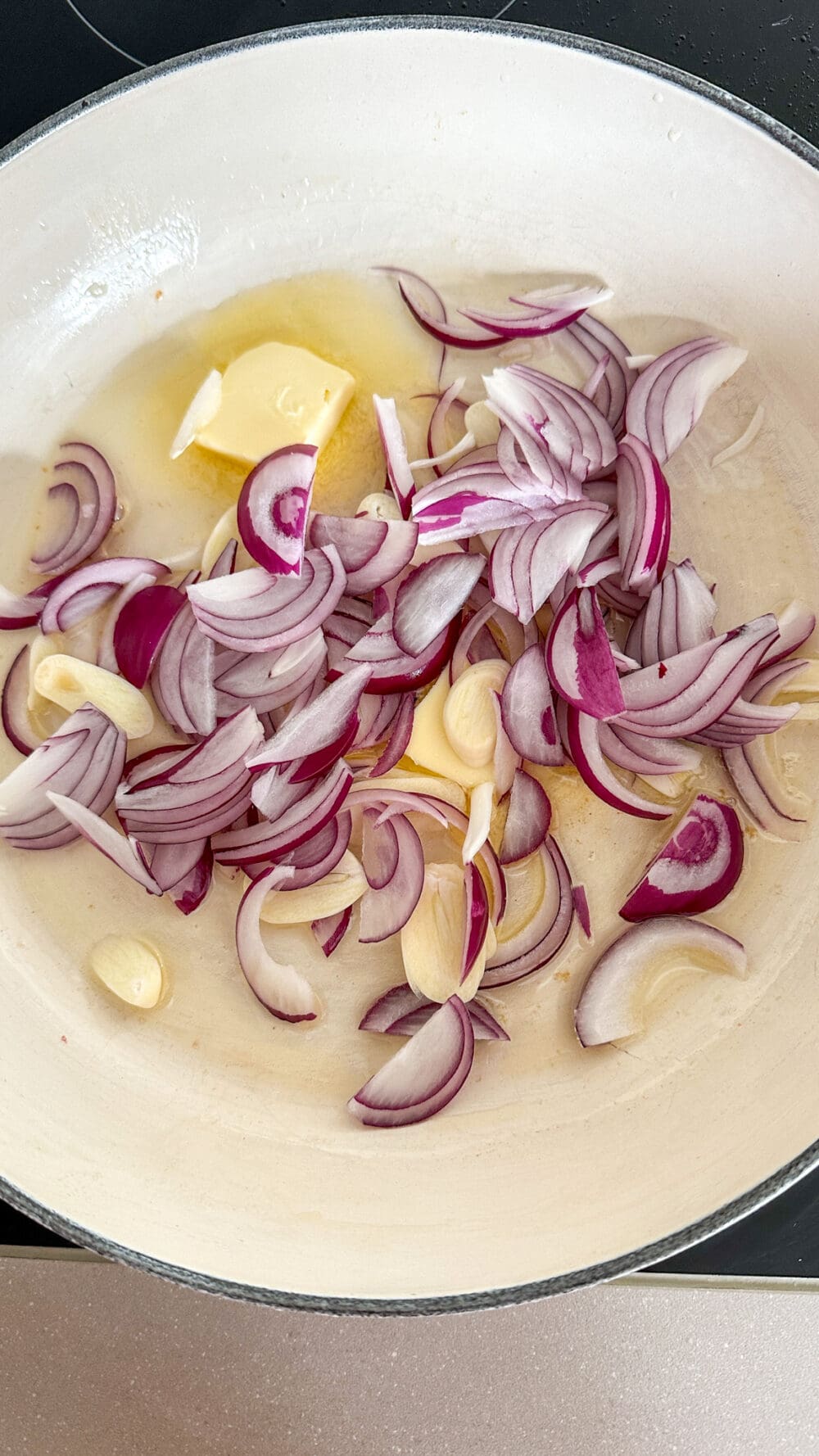 | 3. | Jetzt die Zwiebeln und Knoblauch in der Butter anschwitzen… |