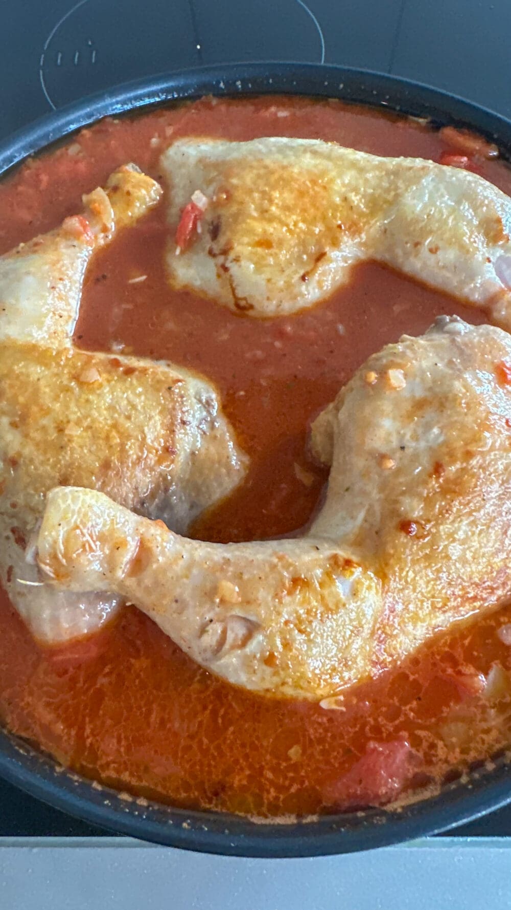 | 8. | Zum Schluss Hähnchenschenkel mit dem Tomatenreis anrichten und genießen! 😊 |