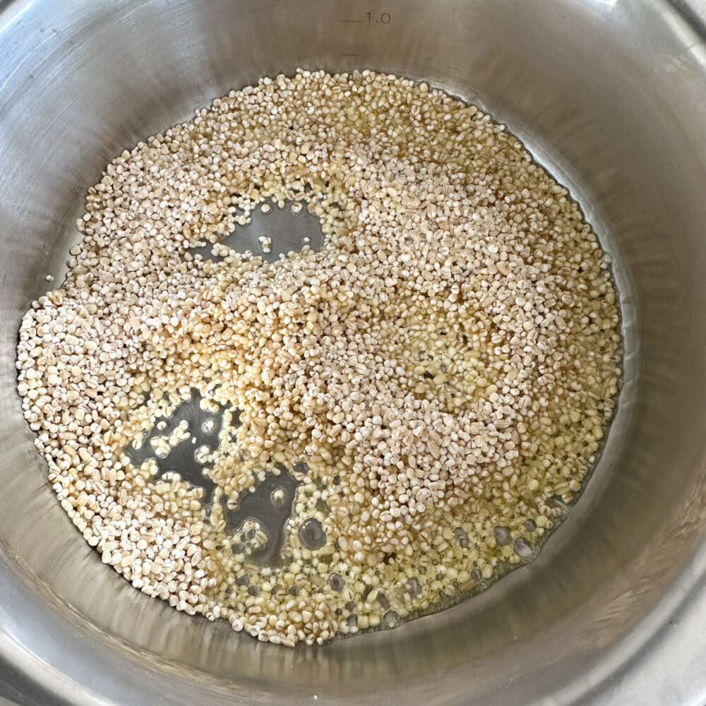 Zuerst die Graupen in 1 EL Öl andünsten.