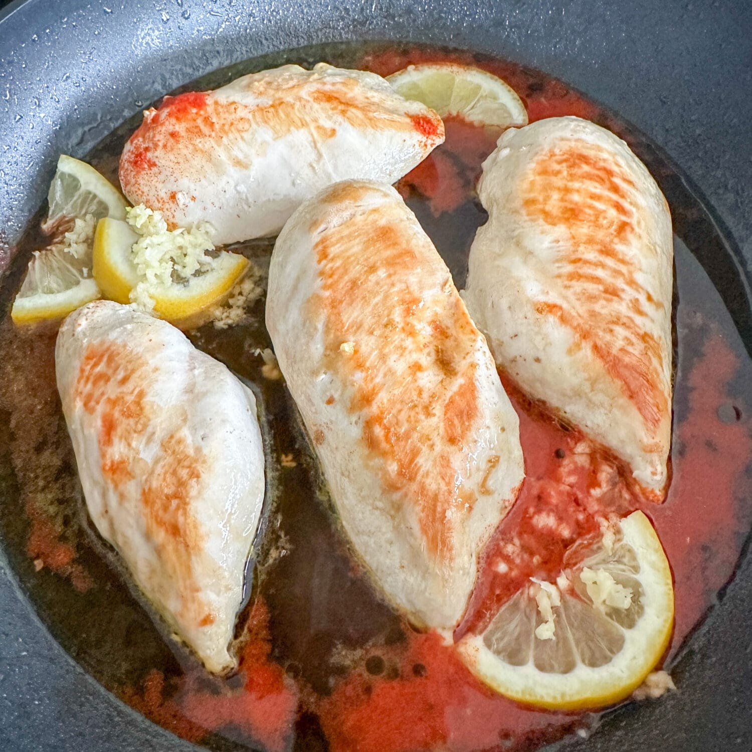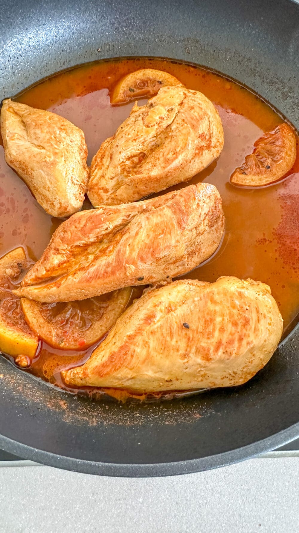 | 7. | Schließlich die Hähnchenfilets aus der Pfanne nehmen… |