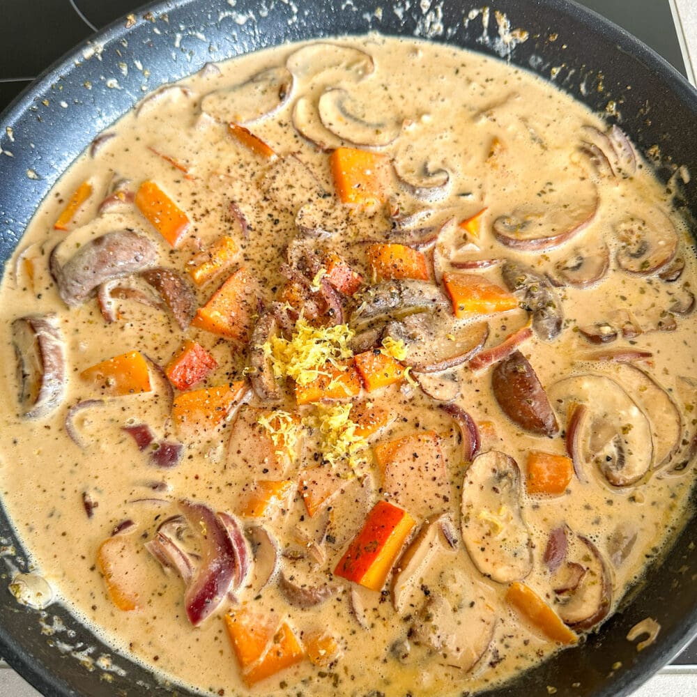 Draußen ist es grau und kalt? Dann gönnt euch diese farbenfrohe Puten-Kürbispfanne. Genuss und gute Laune garantiert – versprochen!