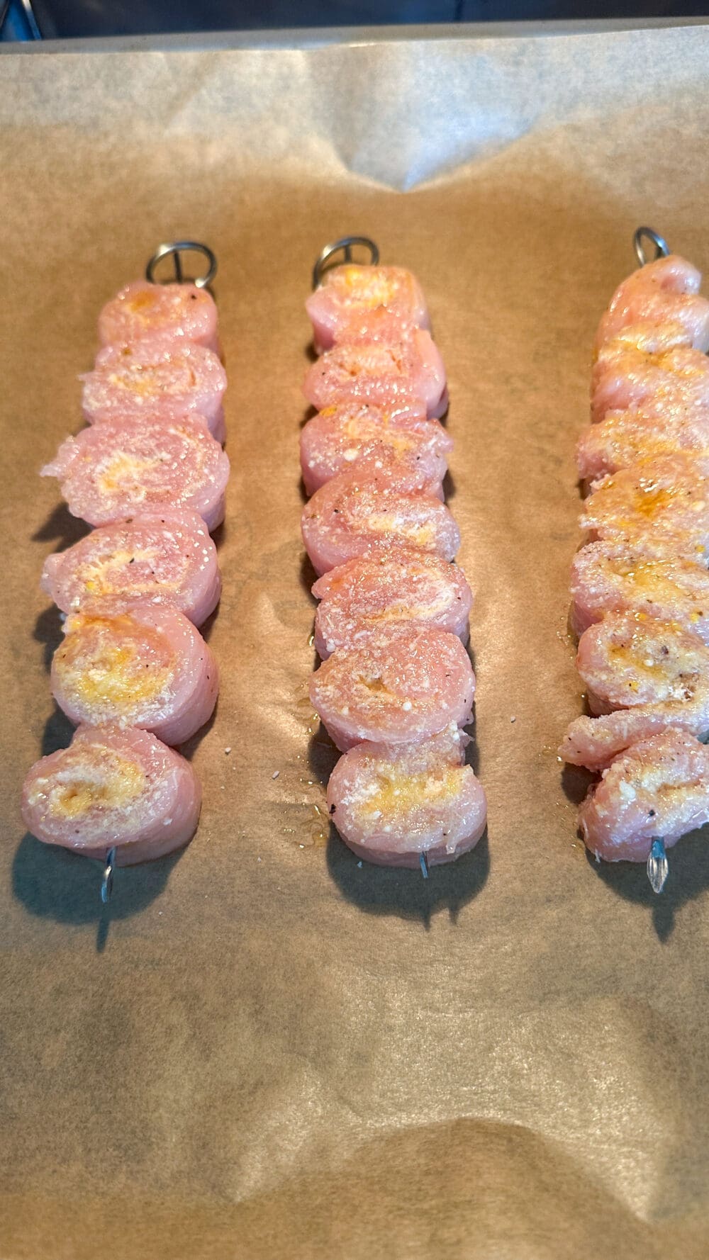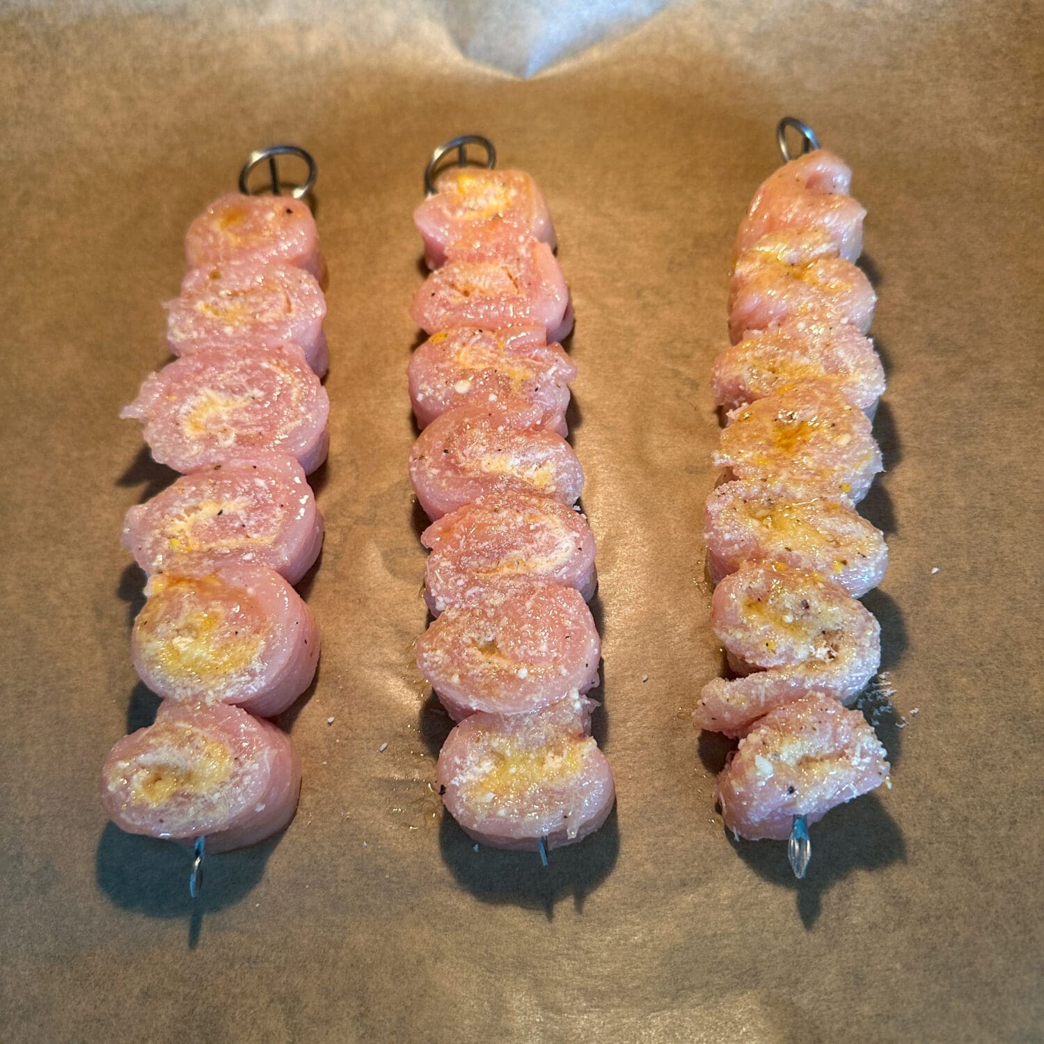 | 8. | Puten-Parmesanröllchen rundherum mit der Marinade bestreichen… |