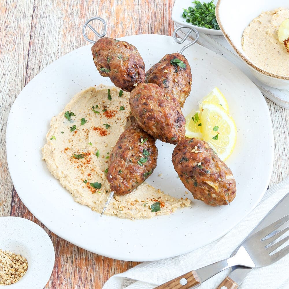 Putenhackfleisch-Kafta mit Blumenkohl-Hummus