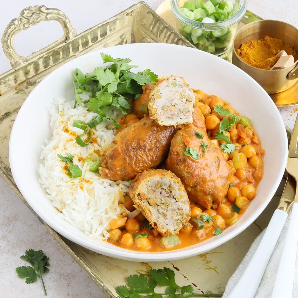 Putenhackfleischbällchen mit Linsen à la India