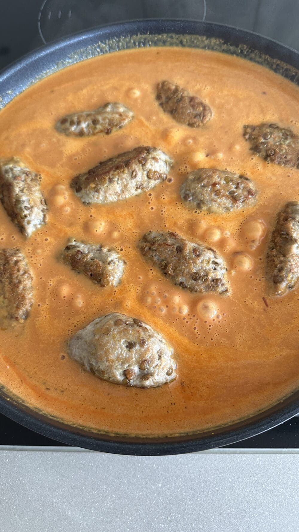 Die Linsenhackbällchen noch mal 10 bis 12 Minuten in der Sauce garen. Nebenbei den Reis kochen. |