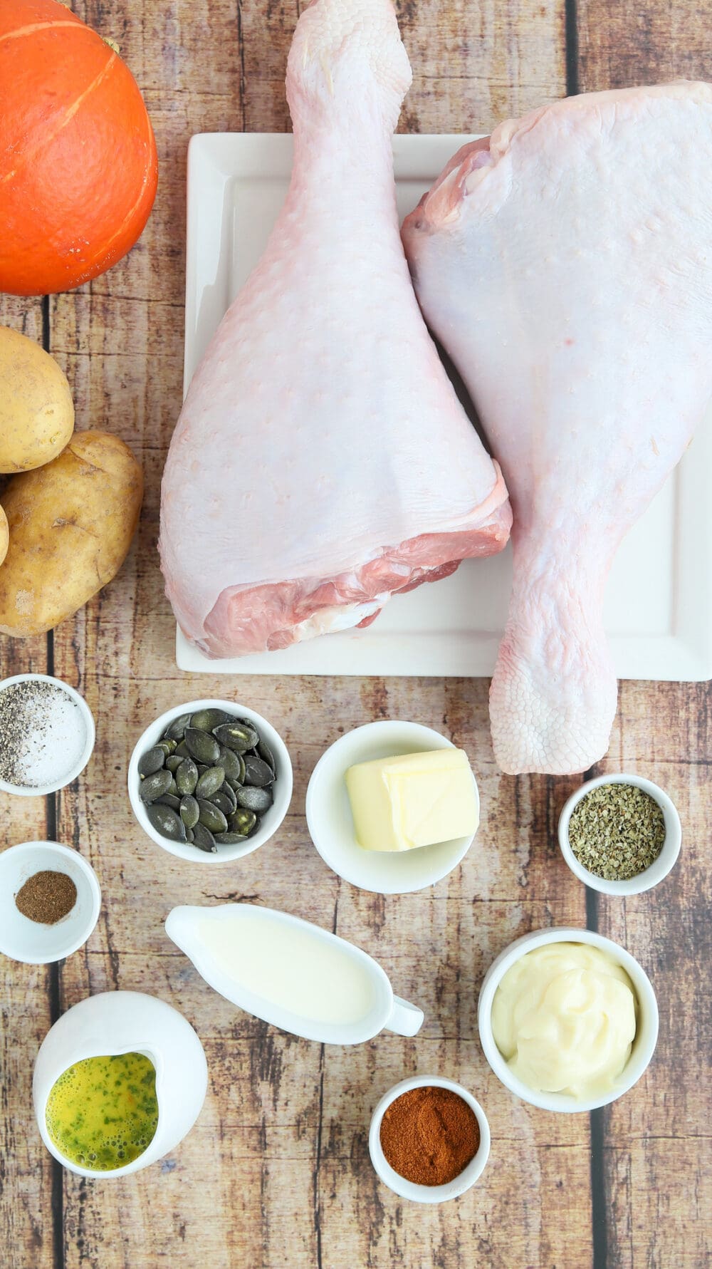 Mayonnaise mit Smoked Paprika, Majoran und etwas Salz und Pfeffer mischen und die Putenkeulen… |