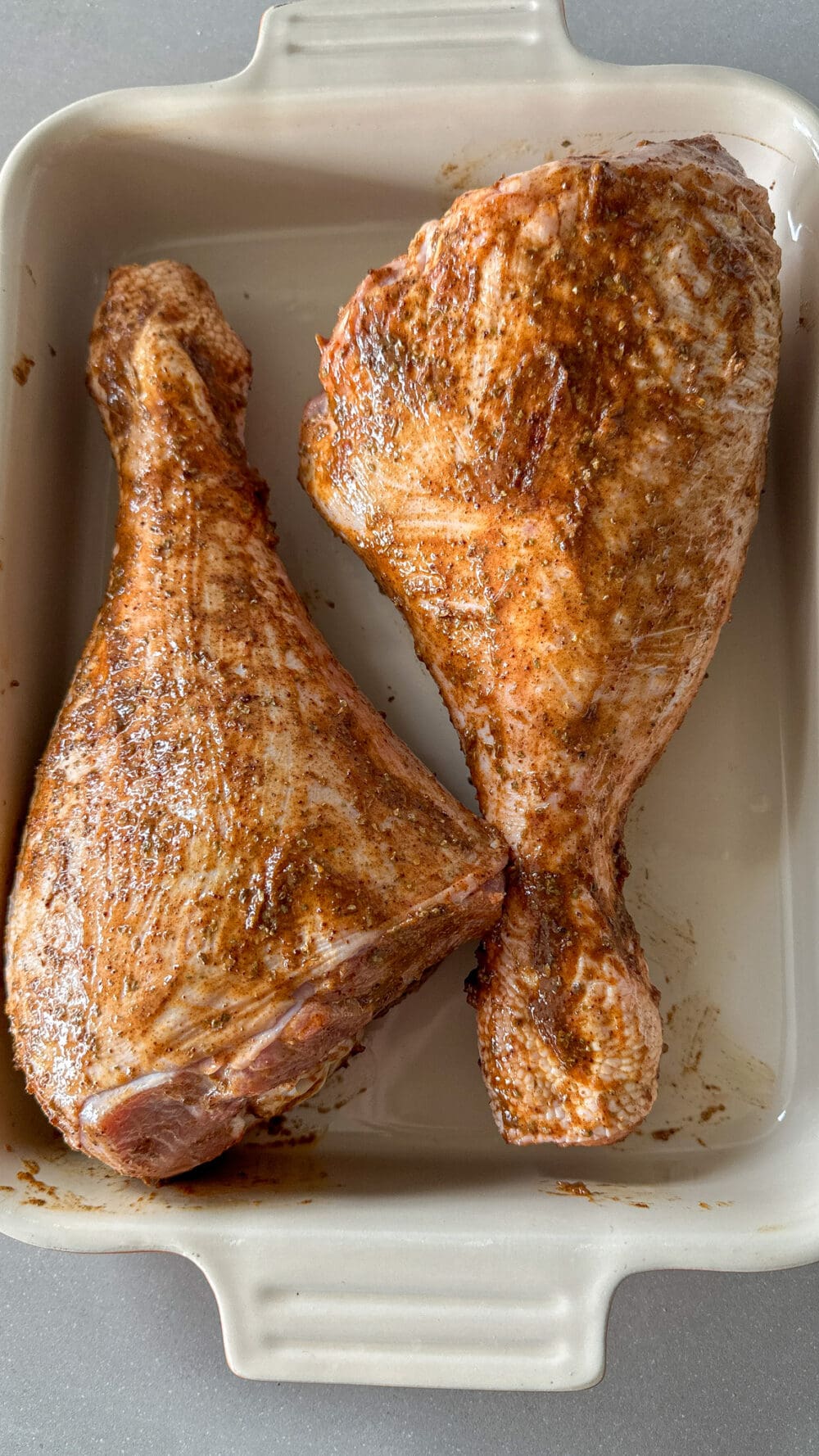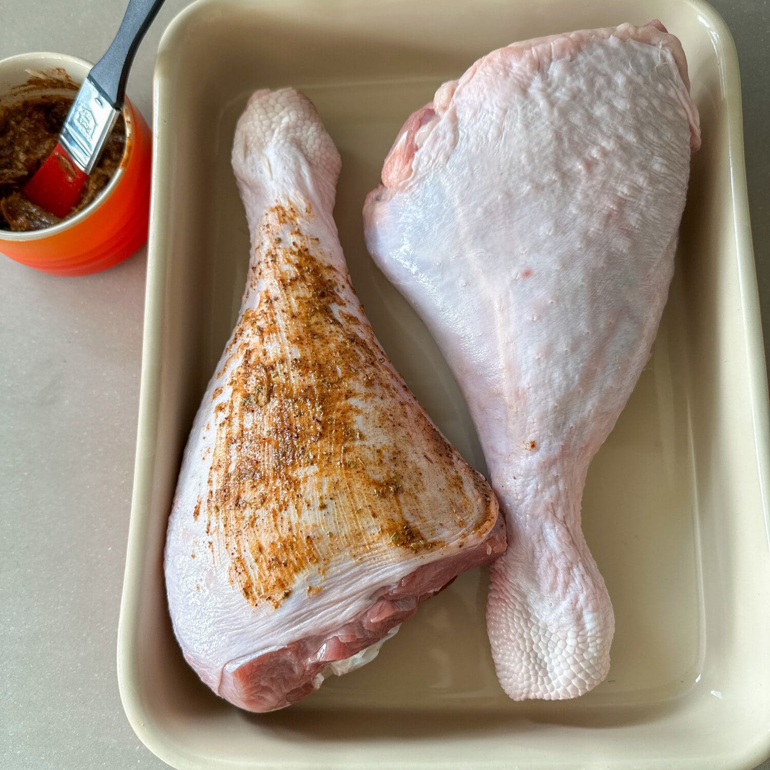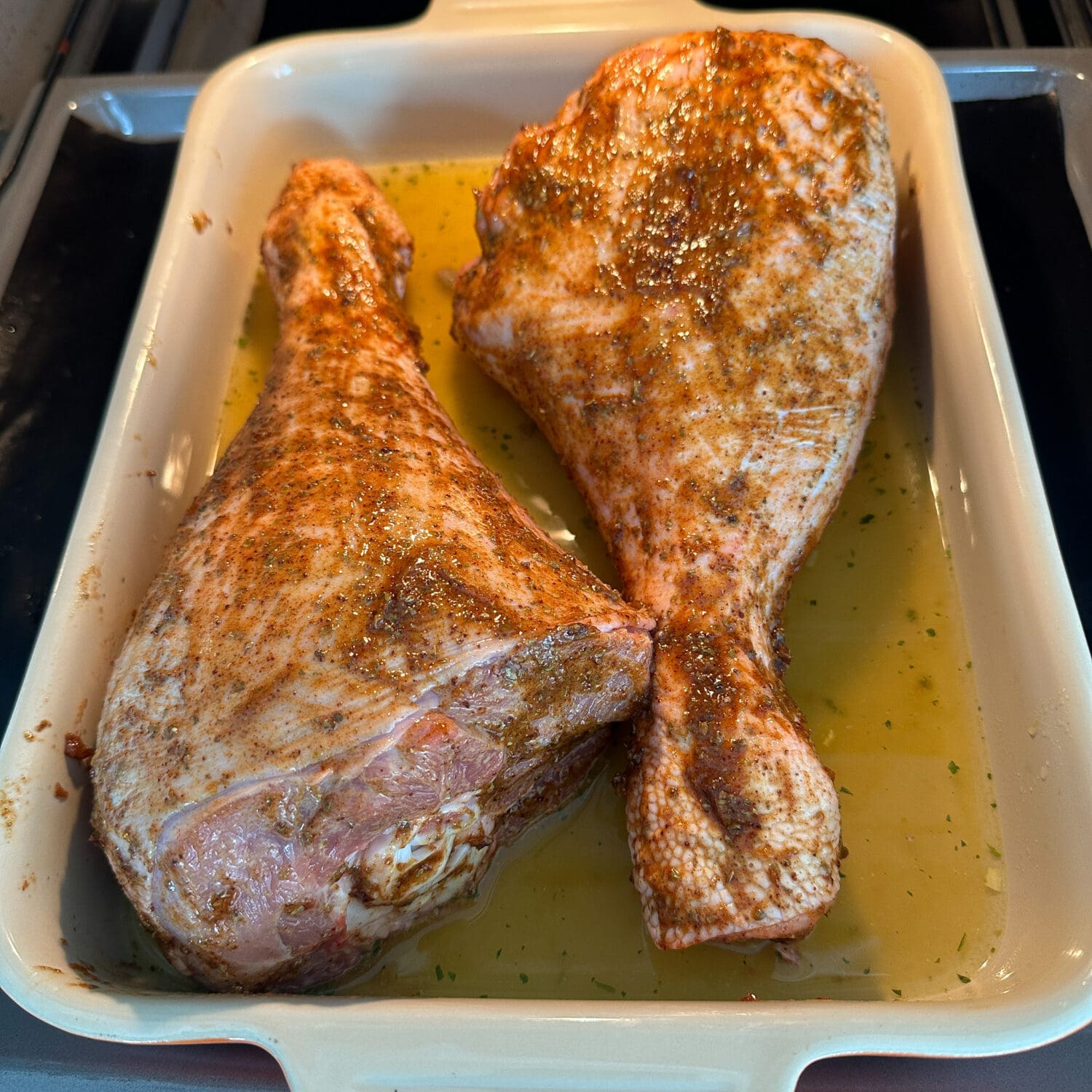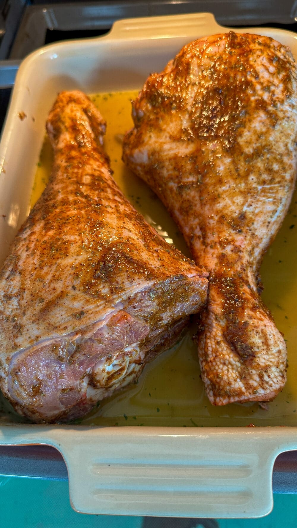 Dieses Rezept bringt echten Soulfood-Charakter auf den Teller! Aromatisch geschmorte Putenkeulen werden mit einer würzigen Gewürzmarinade verfeinert und im Ofen butterzart gegart. Einfach köstlich! 😊