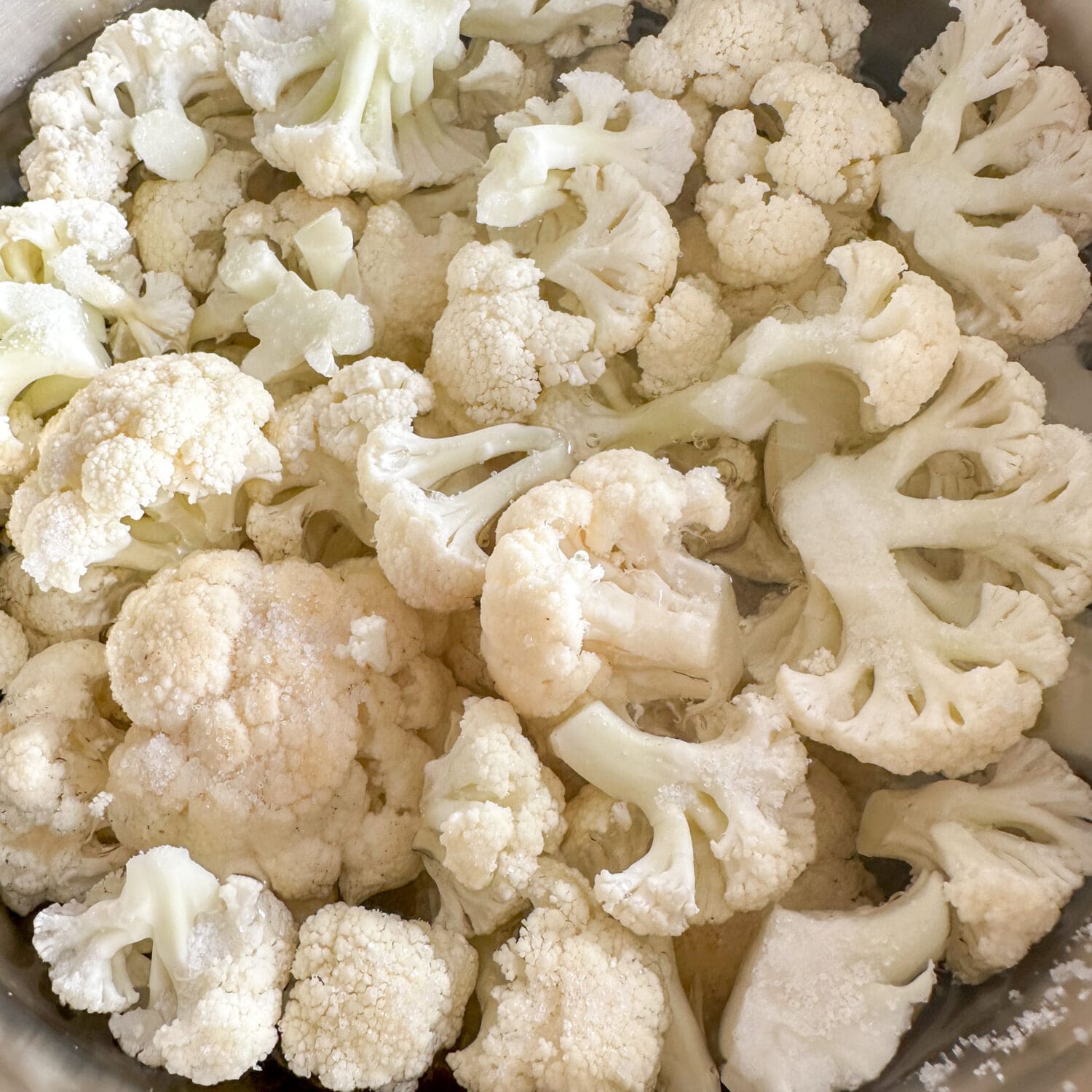 Jetzt den Blumenkohl in Röschen teilen, in Salzwasser garen… |